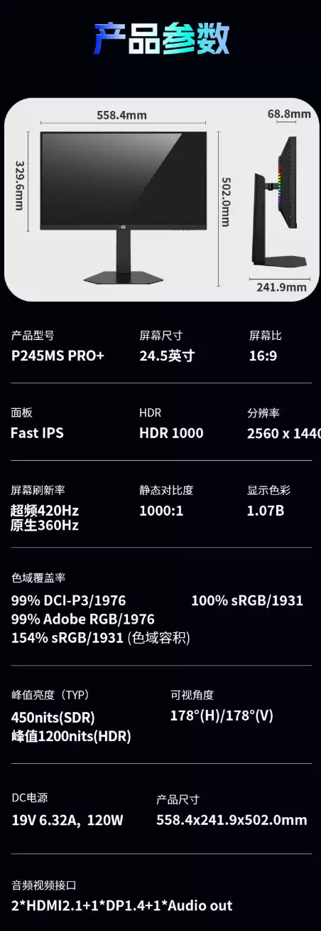 泰坦军团P245MS PRO+显示器正式发售:24.5英寸2K 420Hz Mini LED,售价2276元