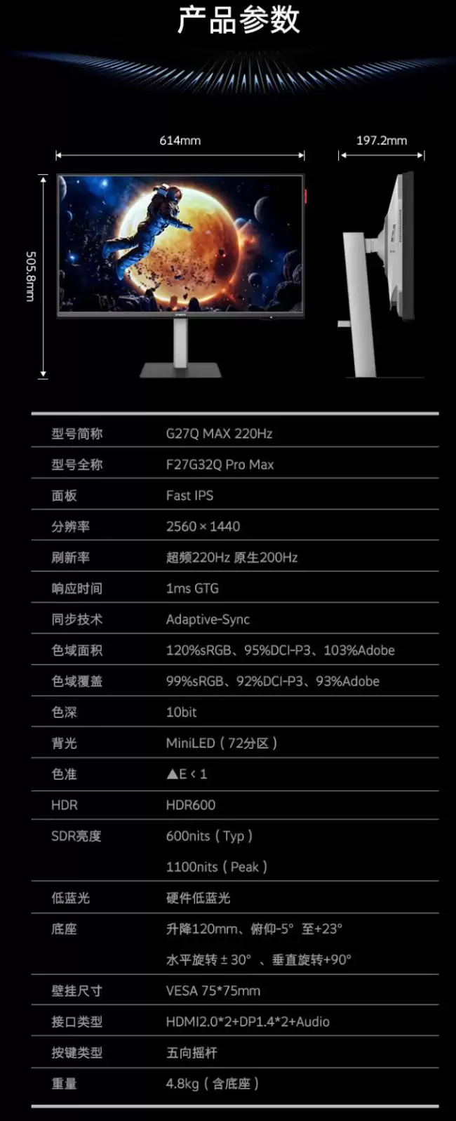 全新创维 G27Q MAX 显示器开启预售:27 英寸 2K 220Hz QD-Mini LED 面板 999 元