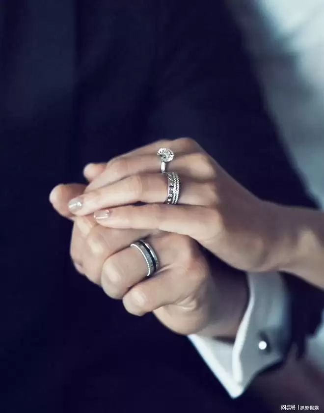 照片中,蔡卓妍与老公牵手展示婚戒。她的手轻轻搭在对方的手上,两枚婚戒款式大气,光彩夺目。