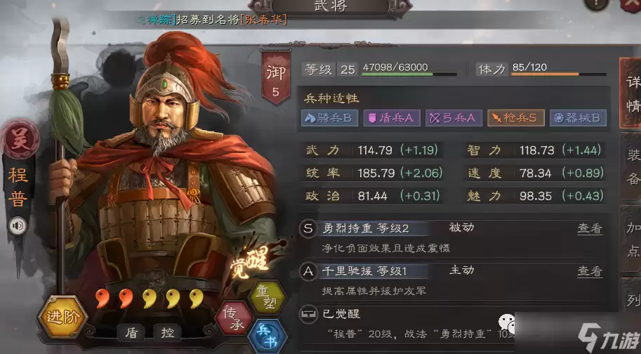 吴弓需要他,吴枪需要他,张角队伍需要他,各种缺辅助的阵容都可以考虑他。程普,真的很忙。