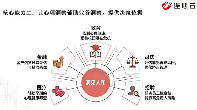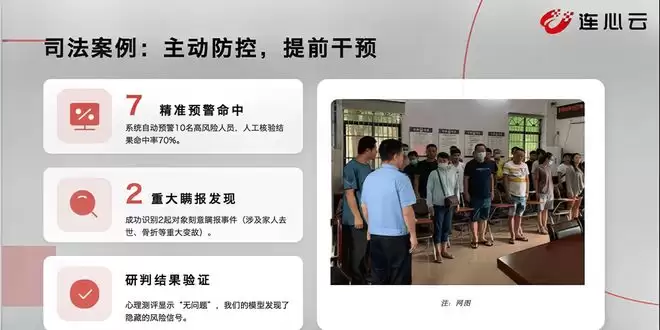 举个例子:在教育场景,我们为学校提供无感的心理健康监测工具,能在危险事件发生前,识别出前置的心理异常信号,帮助老师提前干预;在司法场景,我们为司法机关提供再犯罪风险预测模型,协助优化对社区矫正等特殊人员的管理策略;在招聘场景,帮助企业预测员工的稳定性、职业倦怠程度以及对企业的忠诚度;在金融场景,则协助客户分析借款人的借贷风险与逾期可能性。
