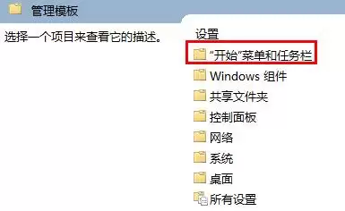 第三步,进入“管理模板”后,接着点击其下的 “开始菜单和任务栏” 选项。