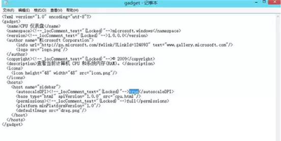 进入该文件夹后,再打开里面的“zh-CN”文件夹,找到一个名为 **gadget.xml** 的文件。用记事本打开它,寻找一行代码:。把其中的“true”改为“false”。改好后,先将文件另存到桌面,然后再从桌面复制回原文件夹,替换掉旧文件。完成这一步后,重启小工具,显示问题通常就迎刃而解了。