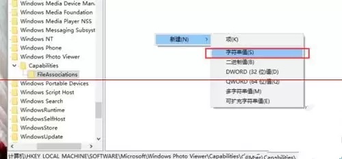2. 导航至同一路径:HKEY_LOCAL_MACHINE\SOFTWARE\Microsoft\Windows Photo Viewer\Capabilities\FileAssociations。
