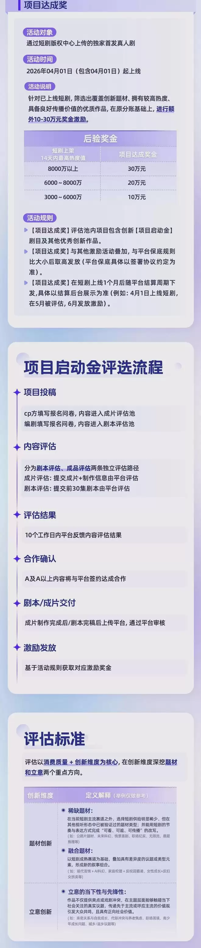 此次扶持计划,精准聚焦于短剧生产流程中两个最核心、也最需要资源的阶段:一是尚未开发的剧本创意,二是已经制作完成但还未上线的成片作品。