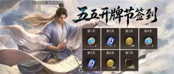 具体来看这次的活动。根据官方公告,“五五开牌节签到”活动将于4月30日04:00正式拉开帷幕,一直持续到5月10日23:59结束。