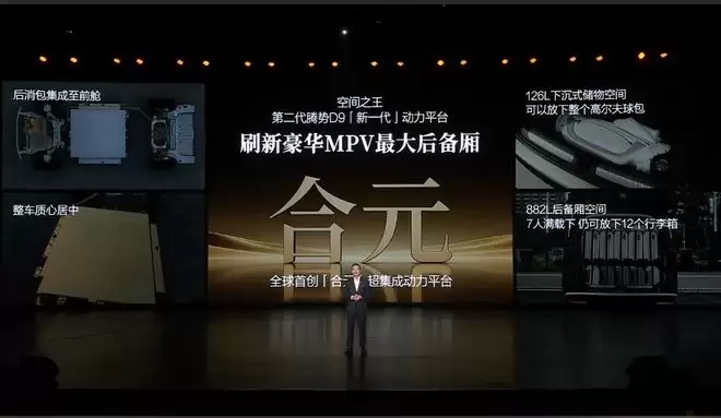 除了“跑”和“充”,MPV的灵魂——空间,也得到了创造性优化。新车采用了全球首创的禾源超集成动力平台,通过将后消音包集成至车辆前部,硬生生“挖”出了126升的下沉式储物空间。最终,后备箱总容积达到882升,即便7座满载,也能轻松塞下12个行李箱。这对于家庭出行或商务接待来说,实用性提升了一个档次。
