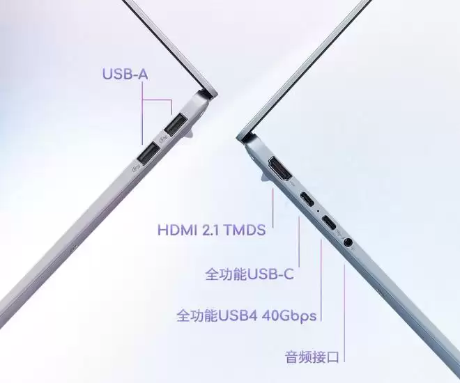接口扩展性方面,这台轻薄本也毫不妥协。它配备了1个全功能USB4(40Gbps)、1个USB-C、2个USB-A、HDMI 2.1以及3.5mm音频接口,连接显示器、移动硬盘、键鼠等外设无需额外携带扩展坞,非常方便。屏幕上方集成的1080P IR摄像头支持Windows Hello面部识别,实现秒速登录,安全又便捷。