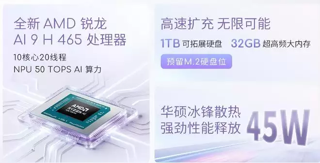然而,真正的重头戏在于AI。这款处理器采用了AMD XDNA 2 NPU架构,NPU算力高达50 TOPS。这个数字意味着每秒可执行50万亿次运算,为本地流畅运行各类生成式AI应用、大型语言模型和AI助手提供了坚实的硬件基石,让AI真正从“云端”走向“手边”。