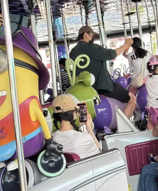 此次出游明显以孩子为中心,夫妻俩贴心陪伴。他们特意带女儿体验了旋转木马。坐上木马后,罗晋戴上口罩与墨镜,低调减少外界关注。女儿就坐在身旁,他拿起手机专注抓拍,记录孩子的欢乐时刻。