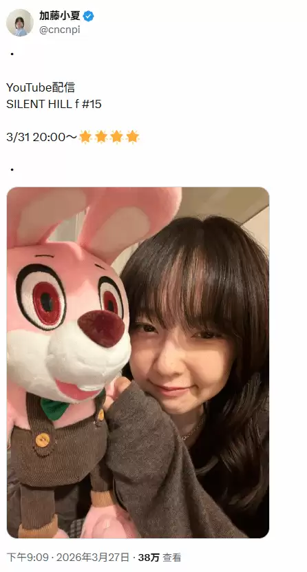 《寂静岭f》主演加藤小夏宣布再次直播玩游戏,引爆粉丝期待热潮