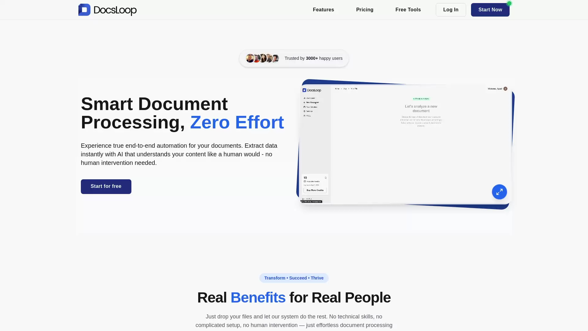 简单来说,DocsLoop是一款基于人工智能的文档提取工具。它的核心使命,是自动化整个文档处理工作流,实现智能处理与无缝协作。最引人注目的,是其宣称的99%数据提取准确率。这意味着,从复杂的PDF文档中抓取表格和文本,并将其转化为整洁的Excel电子表格,整个过程几乎无需人工介入,且速度接近实时。