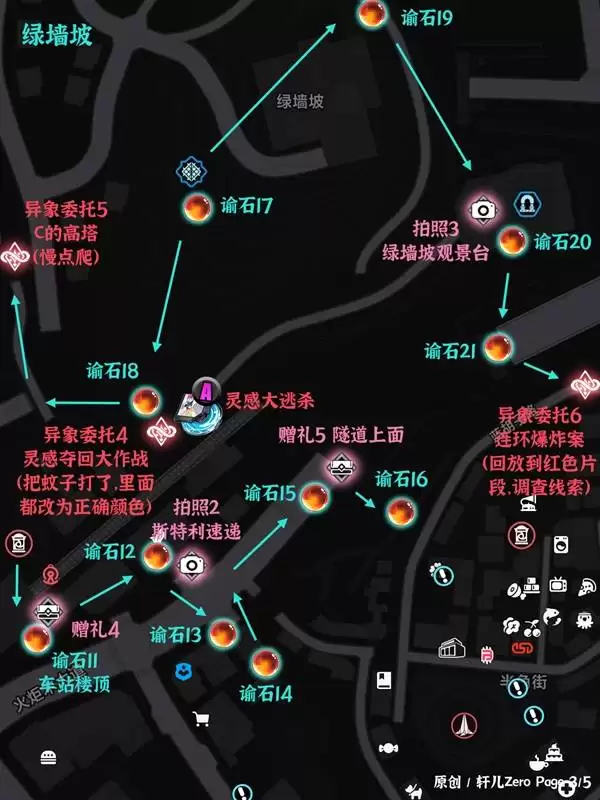 攻略采用了直观的图文结合形式,涵盖了谕石、21的赠礼、拍照打卡以及异象委托等所有收集内容。