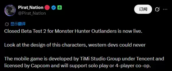 《怪物猎人:旅人》二测开启:东方美学设计引海外热议 4月29日,由腾讯与卡普空联手打造的大陆首款正版怪猎动作手游《怪物猎人:旅人》,正式拉开了第二次封闭测试的帷幕。 需要明确的是,本次测试不涉及任何内购功能,所有测试数据也将在结束后清空,焦点完全落在游戏本身的体验上。 随着测试开放,游戏的美术风格—