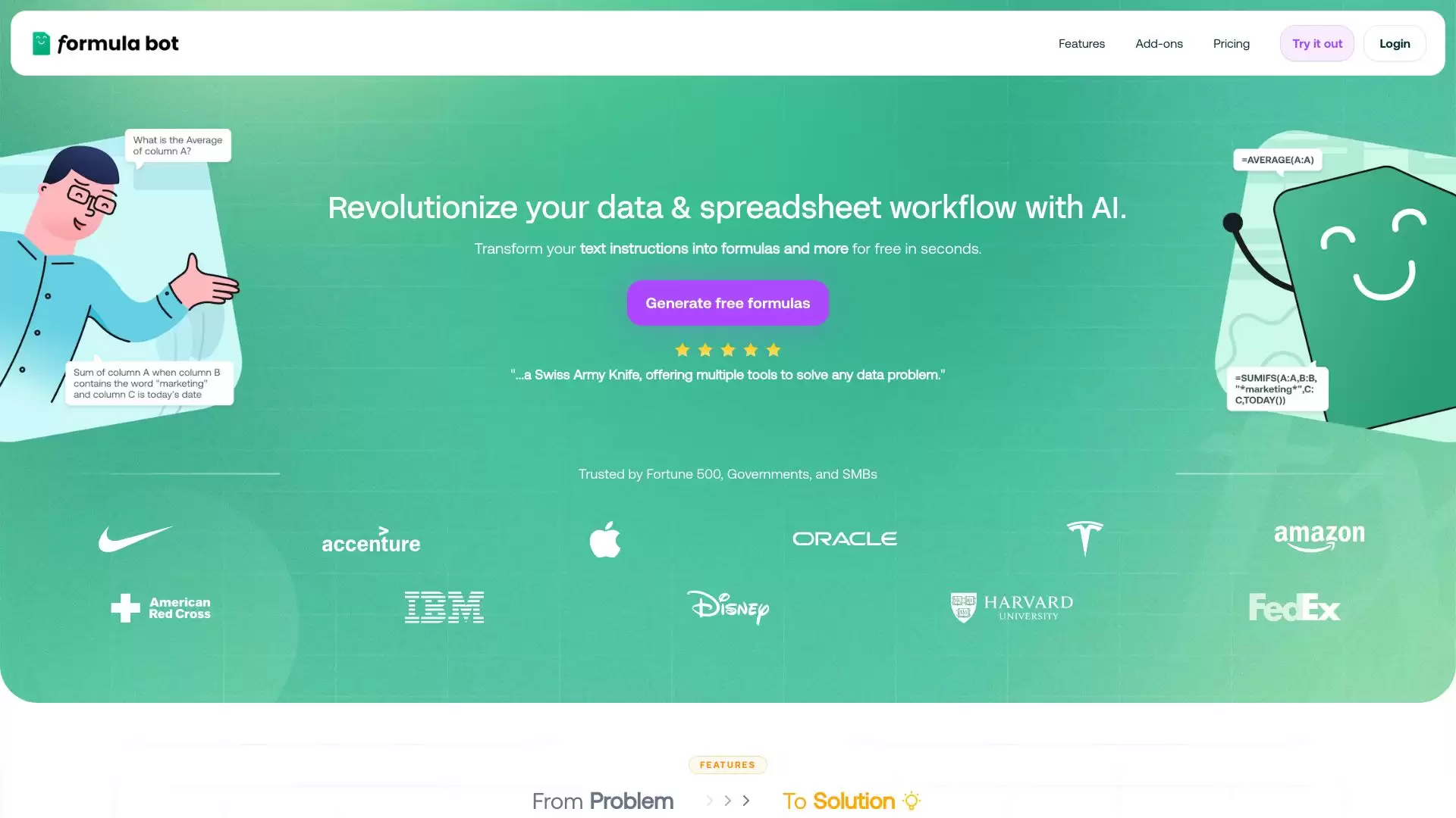 简单来说,Formula Bot 是一个由人工智能驱动的智能平台。它的核心使命,就是充当你的“数据分析翻译官”。当你被复杂的Excel公式、SQL查询、VBA代码或者Google Apps脚本难住时,不必再埋头查手册或拼写那些令人头疼的语法。你只需要用最直白的语言把需求“说”出来,它就能帮你“翻译”成可用的代码或公式。