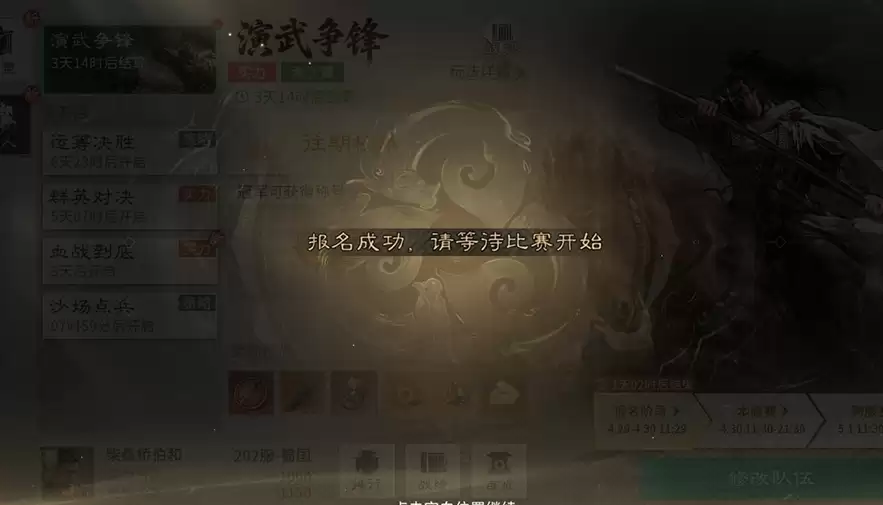 活动报名开启后,主公们就要从自己的武将库里,挑选出最强的3套阵容来参赛。有个小细节很实用:只要比赛还没正式打响,你随时可以调整这三支队伍的出战顺序。这就带来了战术空间——有时候,最强的王牌队伍,未必非得第一个出场。