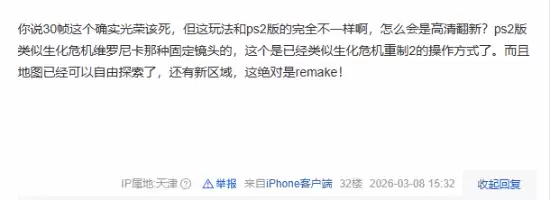 当然,讨论中也出现了不同的意见。有玩家提出,尽管存在锁帧等问题,但这次重制在核心玩法机制上,相较PS2原版其实做出了不少明显调整。因此,将其简单定义为“高清材质包”式的翻新,或许有失公允。