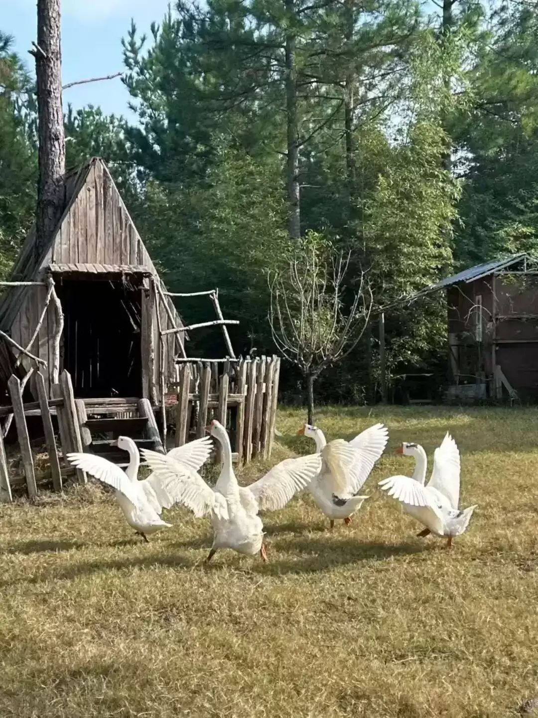 母亲点起炉火做饭,父亲把栅栏里的大鹅放出来,赶到附近的旷野。