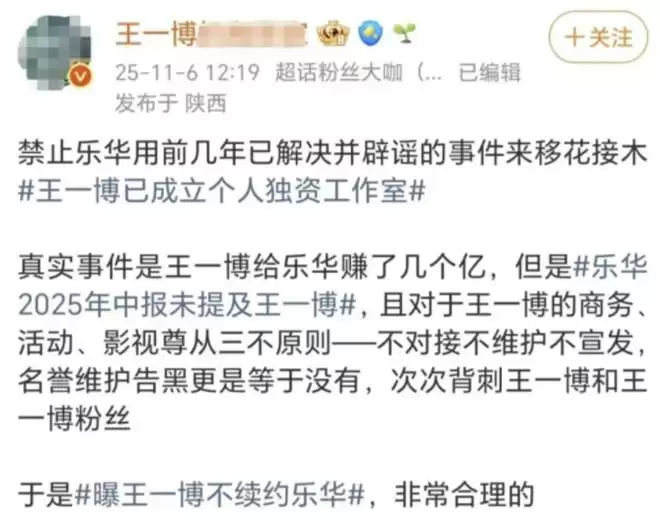 这种反常的举动,被很多人解读为是借机向经纪公司乐华娱乐施压,以在续约或解约问题上争取更多主动权。尤其是2025年“王一博不续约乐华”的传言爆发以来,这种说法似乎显得更有理有据。