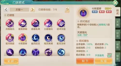 斗转-守护:使用“斗转星移”后,能直接获得“镇元”状态。并且,当你受到被嘲讽单位的攻击时,还能获得额外免伤。这相当于在嘲讽控场的同时,给自己套上了一层坚实的护盾,显著降低了对方的输出效率。