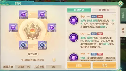 守护器灵套装:这套器灵是构筑的精华所在。它不仅能强化自身的生存能力,更能将这份生存与抗封优势分享给队友。此外,套装效果可以移除自身的负面状态,有效抵消对方一速封印带来的限制。最关键的是,它在被攻击时能触发回血、回怒等一系列保护机制。与“斗转星移”这类嘲讽招式搭配,等于稳定创造了触发这些增益的条件,在保护自己的同时,也为队友营造了更安逸的输出环境。