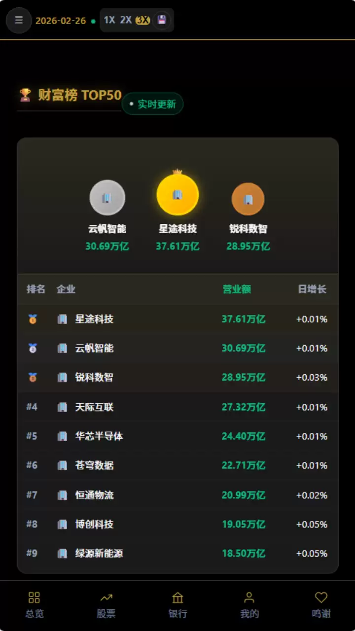 当然,真正的商业世界离不开资本运作。游戏内嵌了火爆的股市与期货实时交易系统,让你在实体经营之外,也能在金融市场上翻云覆雨。同时,银&行贷款、多元融资等现实商业手段的加入,为你的版图扩张提供了强大的资金杠杆。可以说,这是一款旨在让你亲手登顶财富之巅的深度模拟器。