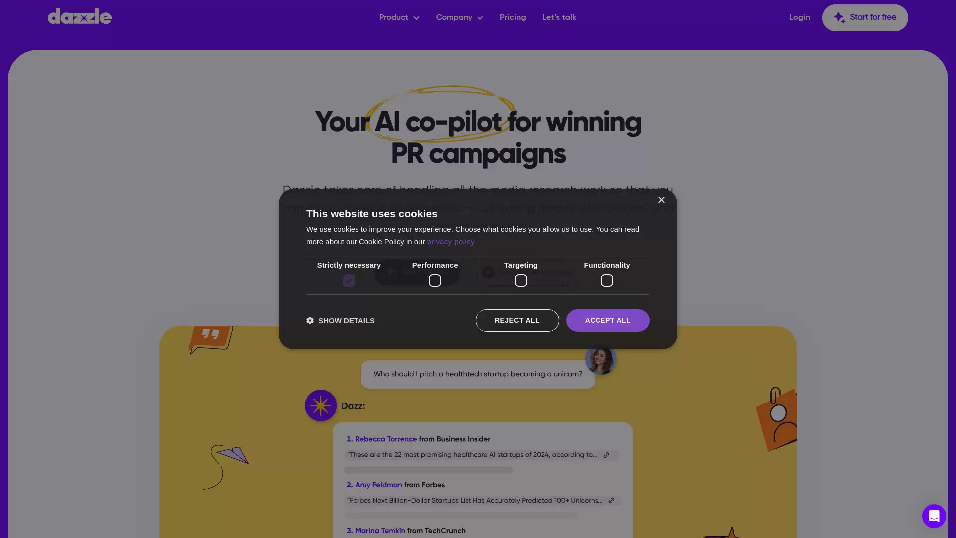 简单来说,Dazzle是一个旨在帮你拿下顶级媒体报道的智能公关平台。它的核心思路很清晰:利用人工智能技术,将你的品牌故事与最相关的记者进行精准匹配。这个平台不仅能提供实时媒体洞察,还自动化了繁杂的媒体研究工作,目的就是让整个公关流程变得高效、省心。