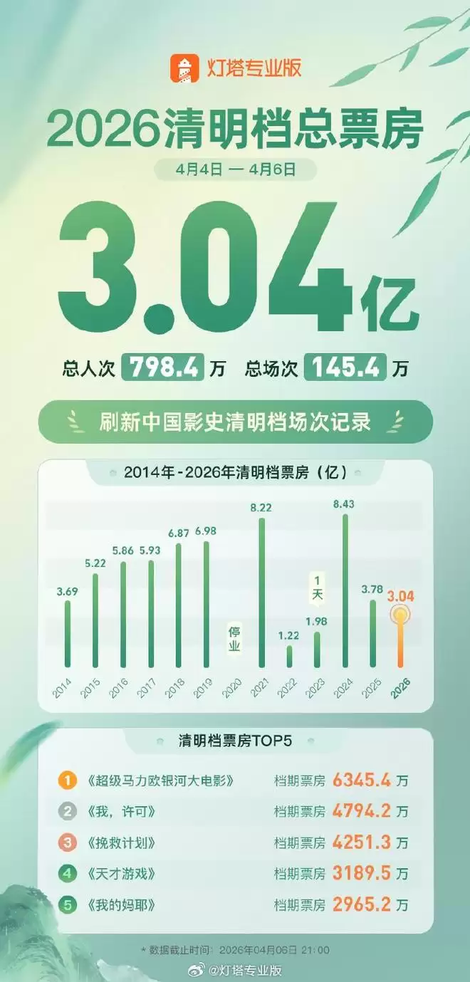 2026清明档总票房3.04亿,刷新中国影史清明档场次纪录