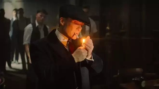 影片前半段,极力刻画汤米的“文青日常”。他深陷战争创伤与亲人离世的泥沼,如同一头伤口永不愈合的雄狮,只顾舔舐自己。外面的世界早已天翻地覆:1940年的英国在法西斯轰炸下岌岌可危,谢尔比家族内部更是分崩离析,新一代掌权者杜克·谢尔比胡作非为。可无论是妹妹的恳求,还是外部的烽火,似乎都难以撼动他那种带着自毁倾向的写作救赎。
