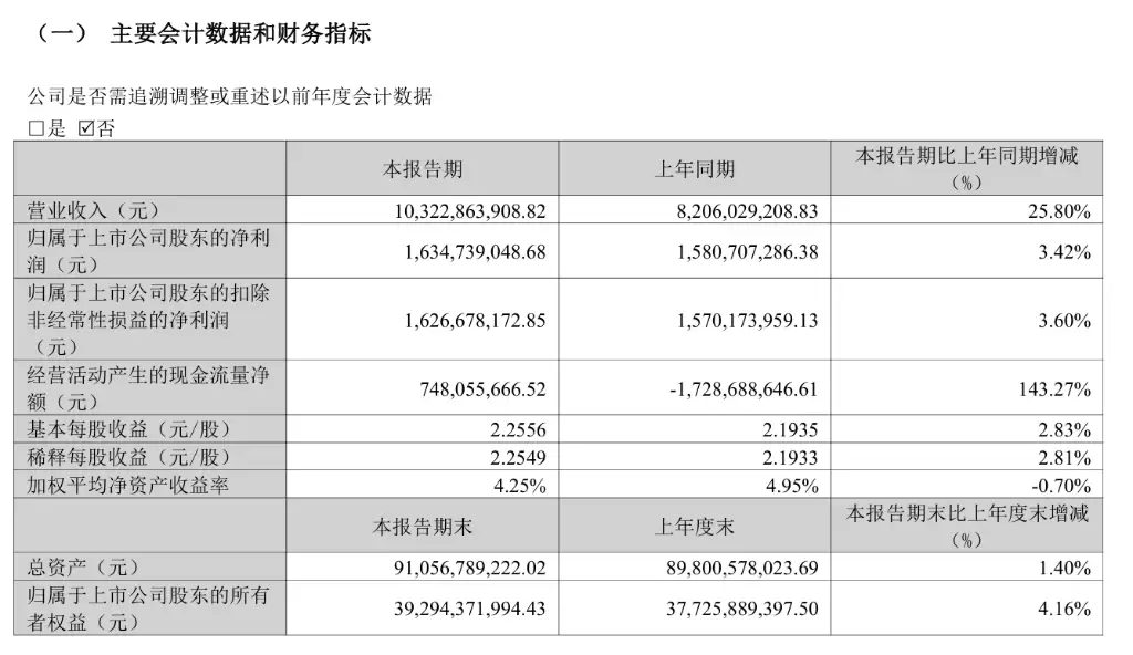 值得注意的是,扣除非经常性损益后的净利润为16.27亿元,同比增长3.60%,与归母净利润增速接近。这表明公司的盈利质量相对稳健,利润增速放缓主要源于经营层面的主动战略投入,而非业绩的异常波动。这才是关键所在。