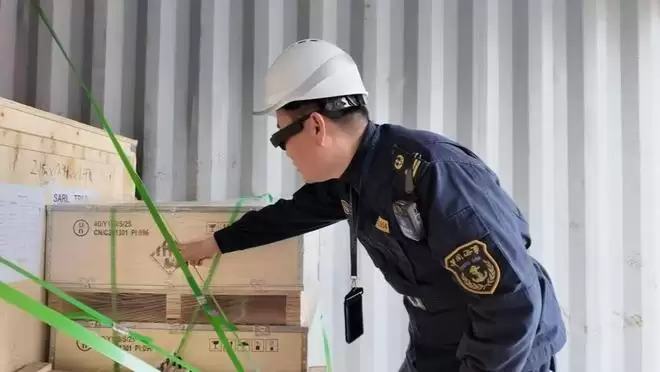 技术的探索并未止步于后台预警。目前,浦东海事局正将AI能力进一步延伸至执法一线,试点应用AI眼镜辅助现场查验。执法人员佩戴上这种设备,其第一视角采集的现场画面能够实时回传,并通过后台的AI算法进行快速分析识别,即时提示可能的违规问题。