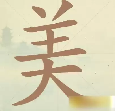 先来看看第52关的界面,核心就是屏幕中央的这个“美”字。我们的任务,就是把它“大卸八块”,找出所有隐藏的汉字。