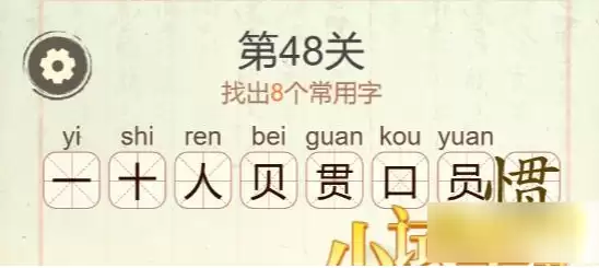 第48关的具体挑战,就是从“惯”字中找出8个常用字。