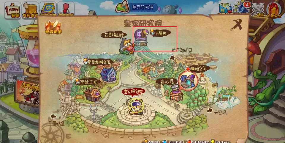 进入“世界”后,下一步的目标就很明确了:找到并点击“皇家研究所”的入口。