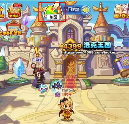 操作起来很简单。首先,点击游戏界面上方正中间的那个地图图标,整个王国的大地图就会在你面前展开。