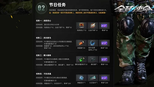 除了开场福利,重头戏还在后面——清明节专属任务链已经上线。玩家只需登录官方活动页面,所有任务详情便一目了然。跟着指引一步步完成,ID识别卡、神器碎片、季券等丰厚奖励就能轻松入手。任务设计颇具心思,从“赤胆忠心”到“不负忠魂”,关卡层层递进,在还原清明肃穆氛围的同时,也让玩家在战斗中体会深意。完成任务不仅能积累大量实用资源,更能获得珍贵的白金子弹。每攒够10枚,就能开启幸运白金靶场,战灵-冻结者(永久)这样的强力武器就在奖池之中,无疑是战力飞跃的关键机会。