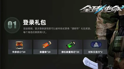活动伊始,登录福利率先送达,这份关怀直接而实用。活动期间,首次登录的玩家,都会在邮件中收到一份专属的“清明节”礼包。打开它,你会发现里面包含了传承核心、能量棒、僚机能量堆芯各20个,外加2张关卡结算材料五倍卡。这些道具绝非摆设,它们是实打实的战力翻跟斗,能帮助玩家快速突破瓶颈,解锁更广阔的游戏内容。这份礼包更像是一份节日的守护,祝愿每位玩家在《全球使命3》的战场上都能无畏前行,用实力谱写自己的荣耀篇章,不负这大好春光与满腔热血。