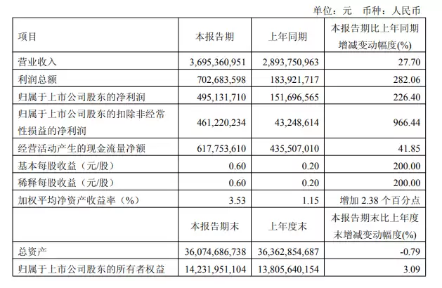 先看整体业绩。2026年一季度,长飞光纤交出了一份收入与利润增速显著分化的成绩单。营业收入同比增长27.70%,达到36.95亿元。而利润端的表现则更为抢眼:归母净利润同比飙升226.40%至4.95亿元;扣除非经常性损益后的净利润更是实现了惊人的966.44%增长,达到4.61亿元。显然,利润的弹性远超收入增长。