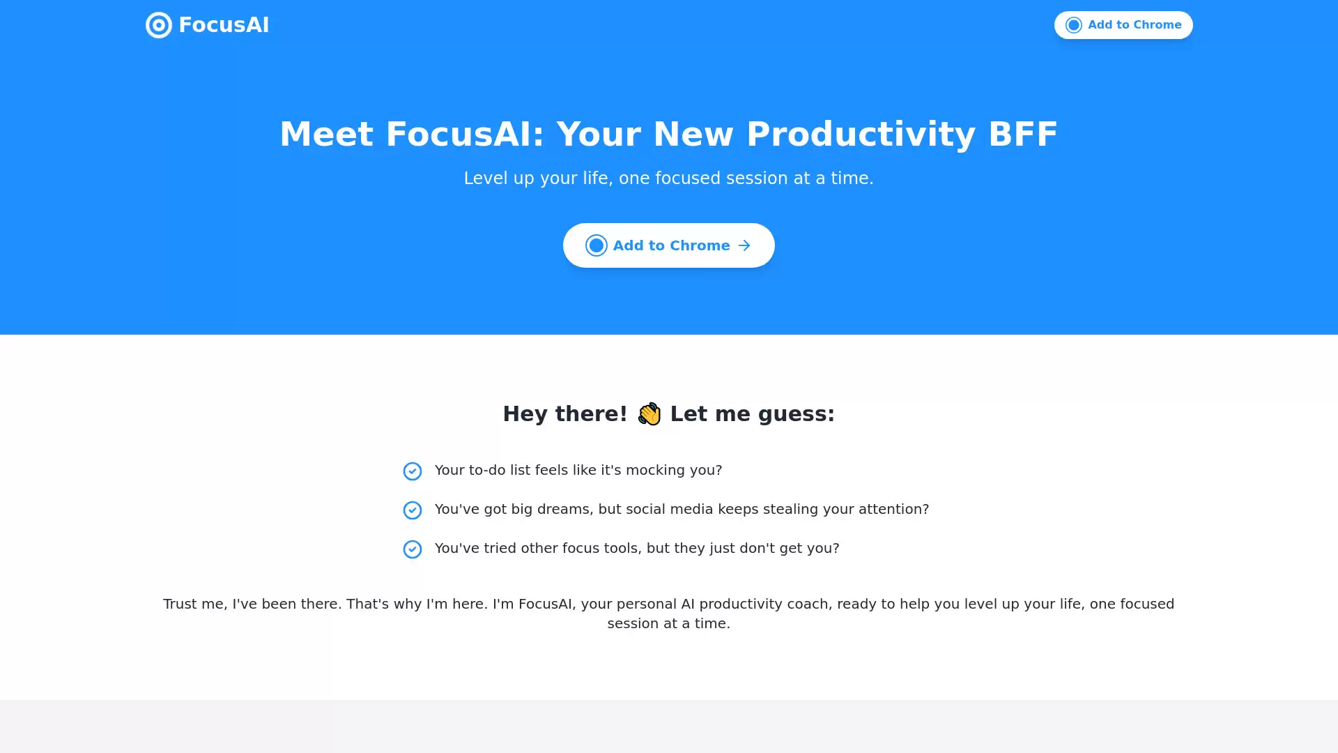 简单来说,Focus AI是一位全天候在线的AI生产力教练。它的核心使命,就是帮你扫清干扰、锁定目标,实实在在地提升日常效率与生活品质。通过人工智能技术,它不仅能主动拦截那些让你分心的网站,还能持续跟踪你的进度,更绝的是,能根据你的状态提供恰到好处的个性化鼓励。