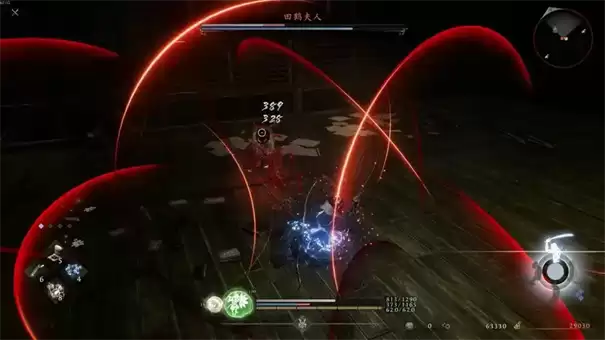 实战循环因此极为简化:开场使用浊剂,锁定BOSS后,反复使用“红牙”进行冲刺打击即可。该攻击的强力冲击能稳定打出BOSS硬直,有效打断其任何出招前摇。只要在其恢复行动前衔接下一次“红牙”,即可形成近乎无限连的控制链,令田鹤夫人全程难以反击。