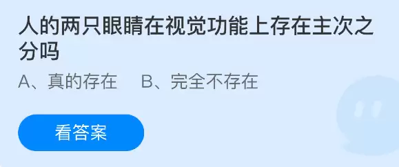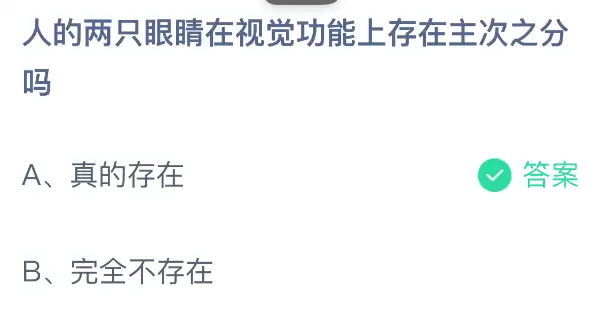 以上就是关于“人的两只眼睛在视觉功能上存在主次之分吗?”的详细解析,以及支付宝蚂蚁庄园2026年4月30日的最新答案。更多相关攻略,请关注本站更新!