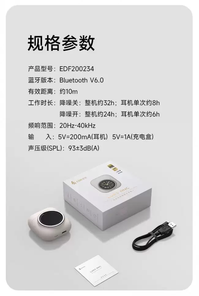 更有意思的是它在智能交互上的拓展。这款耳机支持接入豆包和DeepSeek双AI助手,能实现语音问答。此外,它还具备会议录音、通过App实现实时语音翻译的功能。连接性上,蓝牙6.0和双设备连接都是当前的主流配置。具体的核心参数,可以参考下方的详细规格图: