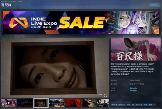 这款游戏的上线颇为低调。早在2026年1月,其Steam商店页面就已秘密上线。直到4月30日凌晨,开发者寝ル猫才在个人推特上正式发布消息,证实《百尺様》已在PC平台Steam商店发售。国区定价相当亲民,仅售23元。