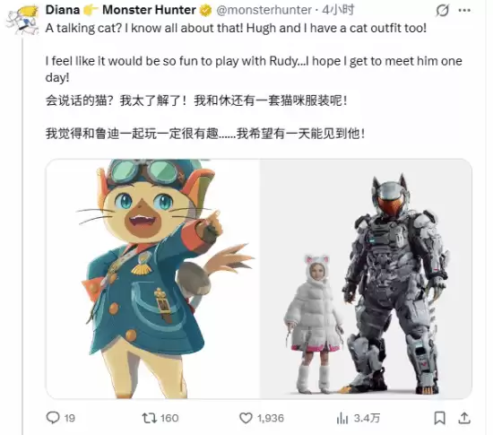 我们此前曾报道,卡普空新作《识质存在》机械小萝莉戴安娜“黑入”《怪物猎人》官方账号,当上了账号运营。