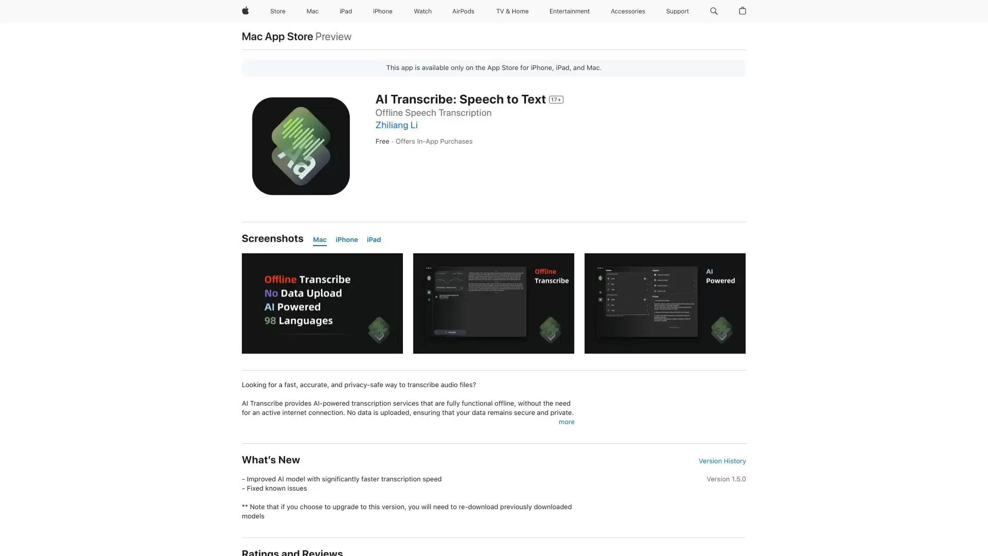 AI Transcribe官网入口:https://apps.apple.com/app/id6445858353