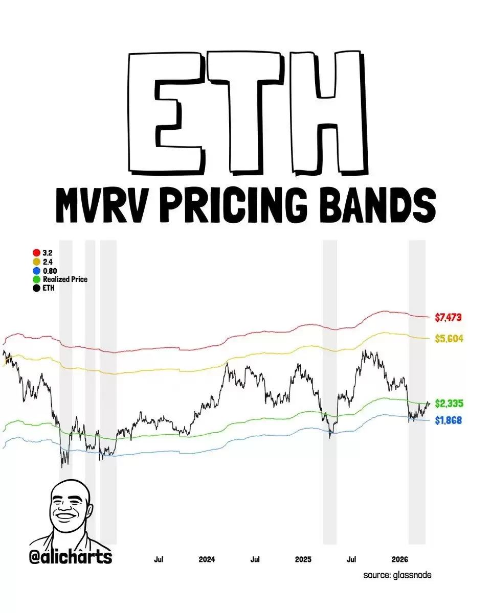 ETH MVRV 定价区间。来源:Ali Charts on X