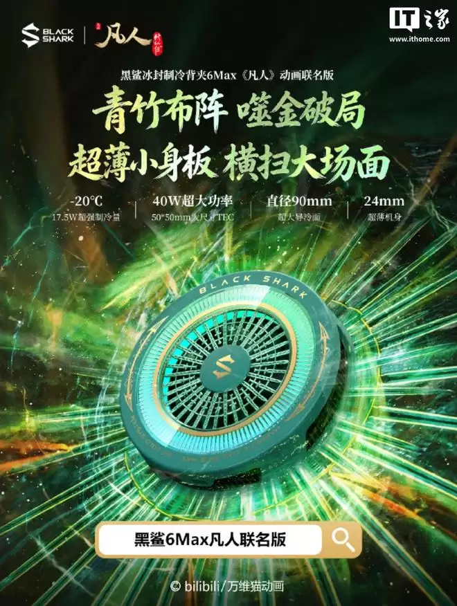 游戏装备圈的跨界合作又添新案例。近日,黑鲨游戏手机官方宣布,将为旗下颇受欢迎的冰封制冷背夹6 Pro与Max系列,推出《凡人修仙传》动画联名版本。新品定于5月8日正式开售,购买即赠联名周边,为硬核散热装备注入了一股国漫仙侠风。