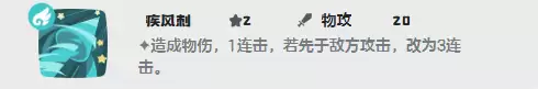 疾风刺(2费,先手+1):单体爆发天花板。三段攻击在顺风加持下,总伤害倍率高达4.5倍(3×1.5),面对精英怪或BOSS时能打出毁灭性伤害。