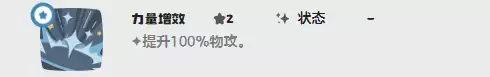 力量增效(2费):爆发核心。直接提升100%物攻(效果持续两回合),实现攻击力翻倍,为后续的高伤害技能铺平道路。