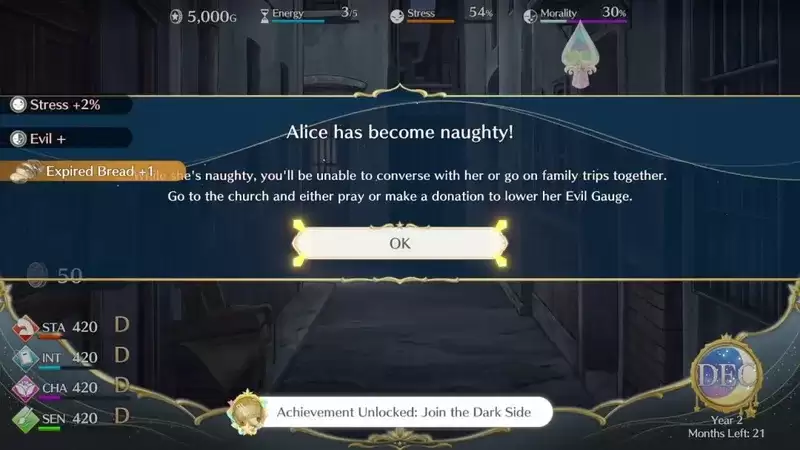 其次,游戏难度会显著提升。在邪恶状态下,管理女儿的压力值将变得更加困难。压力系统本身可能就是维持角色状态平衡的关键,而道德低下无疑让这个天平更难掌控。